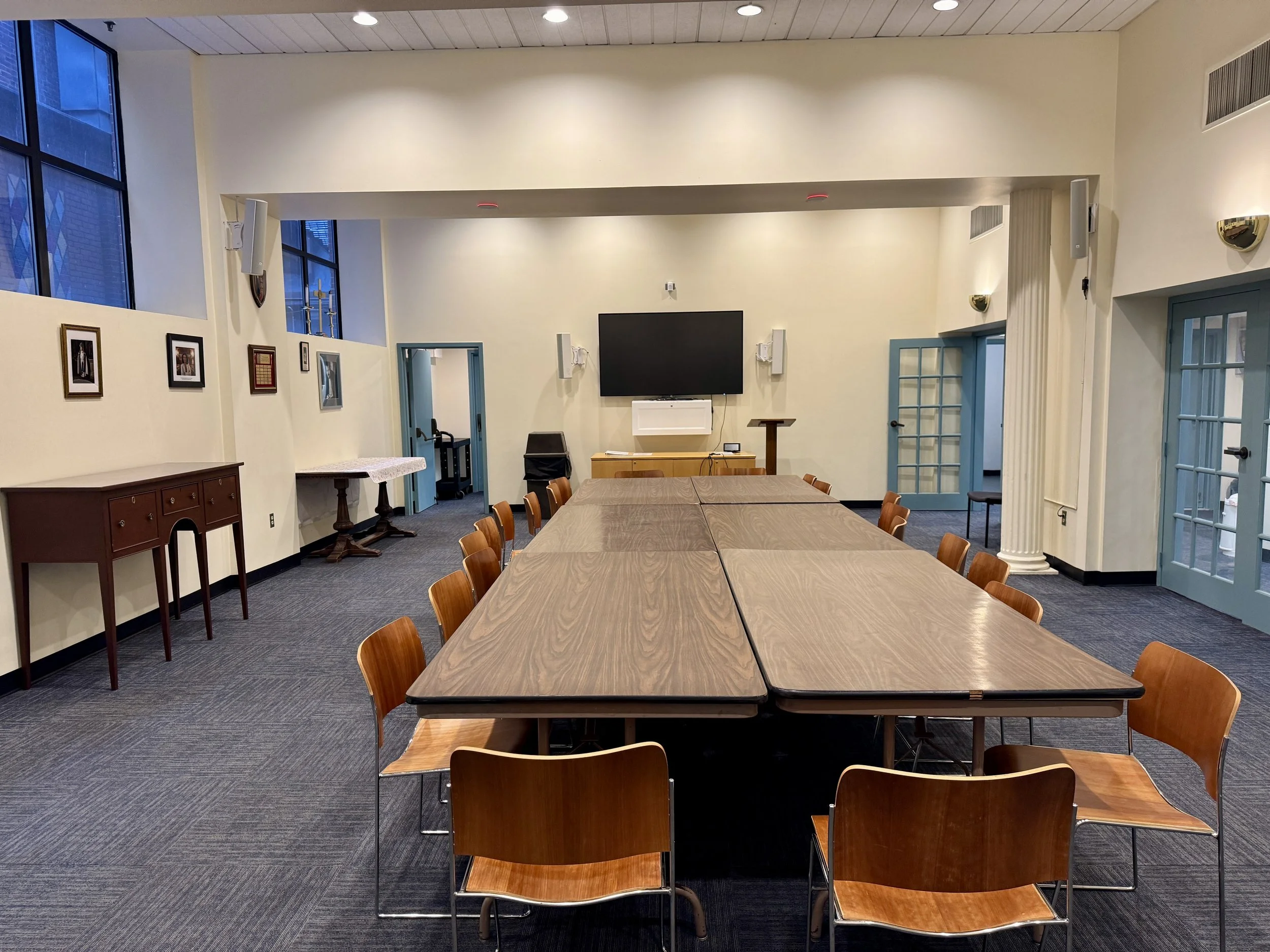 The Lawrence Room can be arranged to suit your needs—whether you’re hosting a board meeting, workshop, discussion group, or informal reception. A kitchenette located in the adjacent room provides added convenience for light refreshments and catering support.